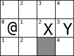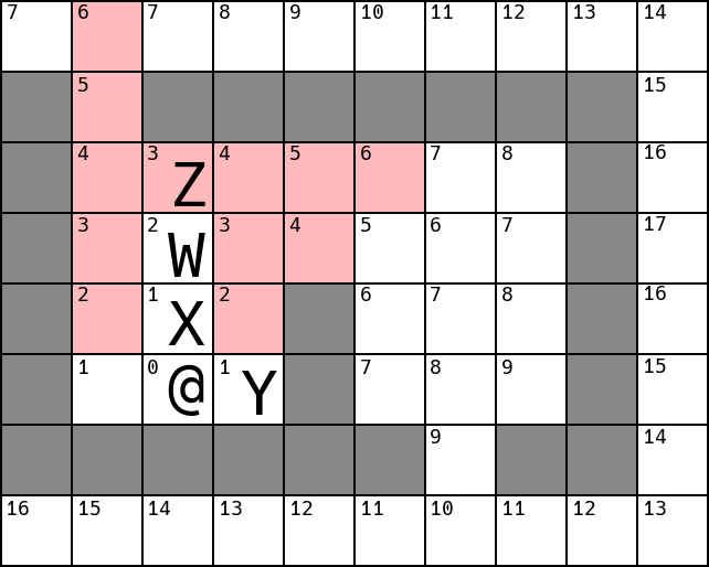 Note that Y chose arbitrarily between 2 cells equidistant from the player.