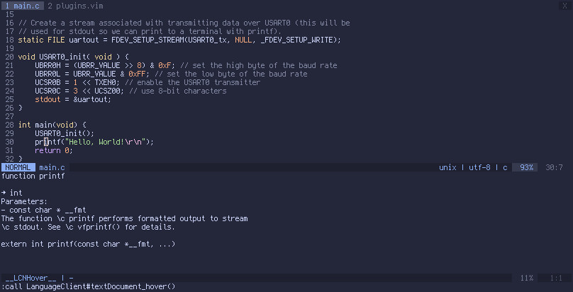 driver for the Arduino and uses it to print Hello, World! with printf: